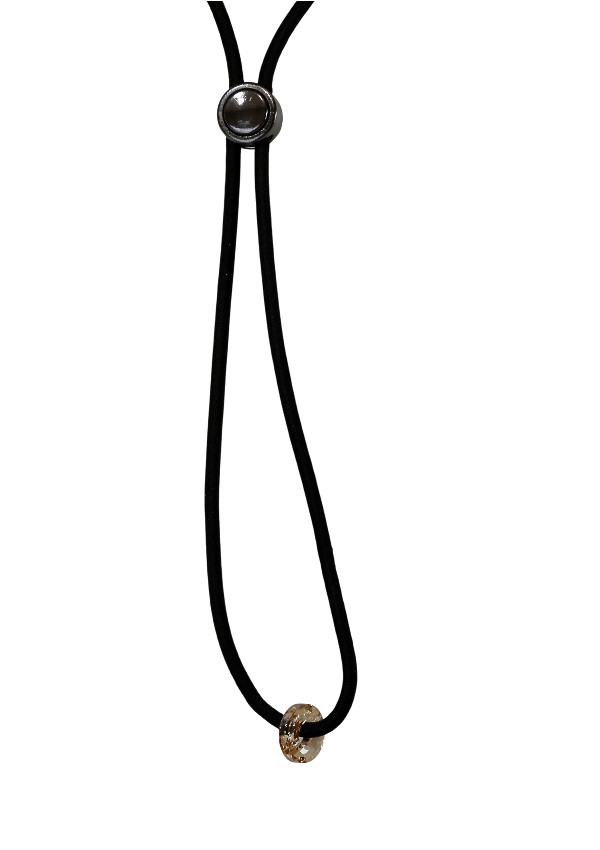ゴムの先には、ゴールデンシャドー色のクリスタルが煌めきます。