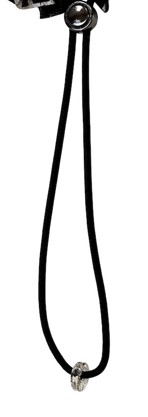 着用時は、ストッパーを緩めて頭からかぶり、お好きな位置までストッパーを押しながらクリスタルを引っ張り、締めて下さい。