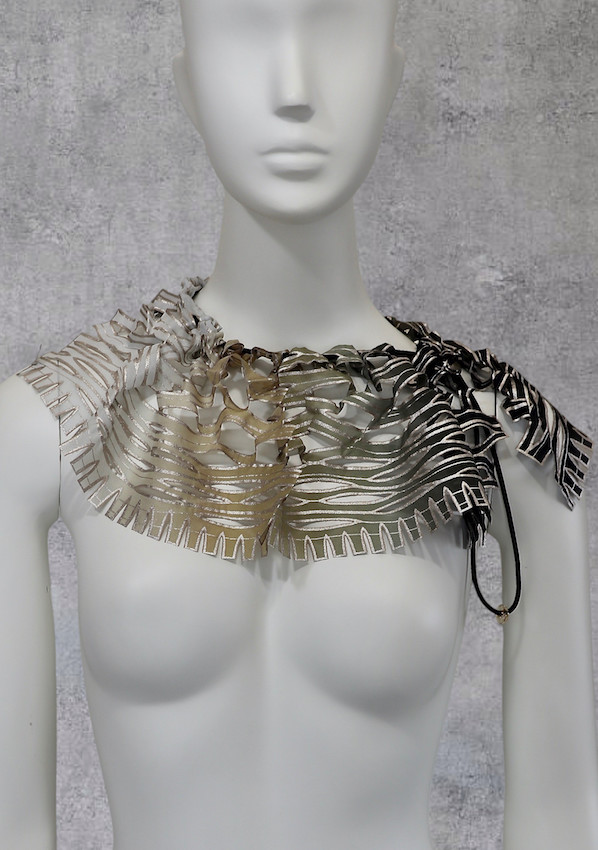 巻かずにストッパーで自由に調整できるMATOUシリーズのカラー(付け襟タイプ)です。